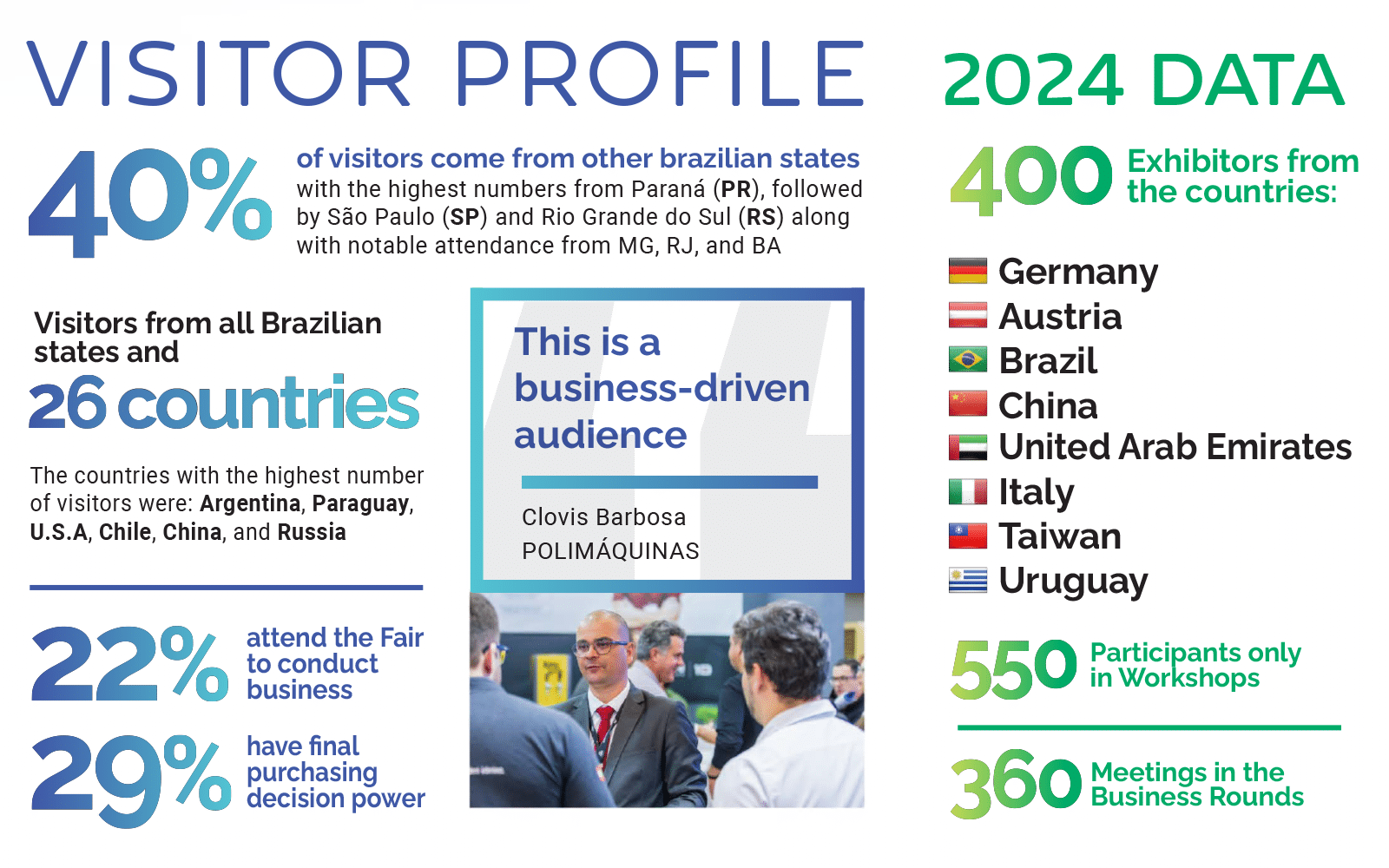 Interplast goes far beyond an exhibition: it is the only trade show in Brazil for Plastic sector that brings together the entire plastic products production chain—from raw materials to finished products. The event attracts experienced, high-level professionals and decision-makers from the country’s main production hubs, looking to do business, connect with suppliers, and discover innovative solutions. At Interplast, they find machinery, equipment, raw materials, processes, molds, and services for the industry. Held in Joinville, one of the largest plastic transformation hubs in Latin America, the show showcases new technologies, promotes discussions on sustainability, and generates a significant volume of contracts. Participating in Interplast means investing in the growth of your business, expanding your network, and staying ahead of the trends shaping the future of the plastics industry.