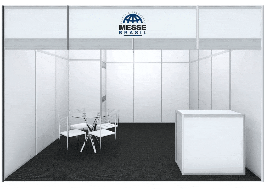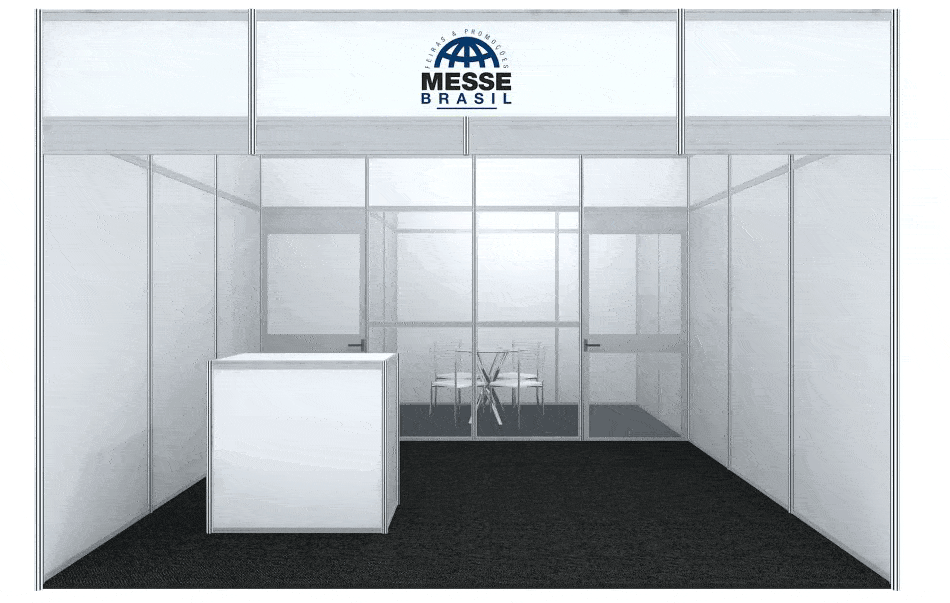 Paredes e testeiras com painéis brancos em TS e vidros de cristal, altura de 2,70 metros.